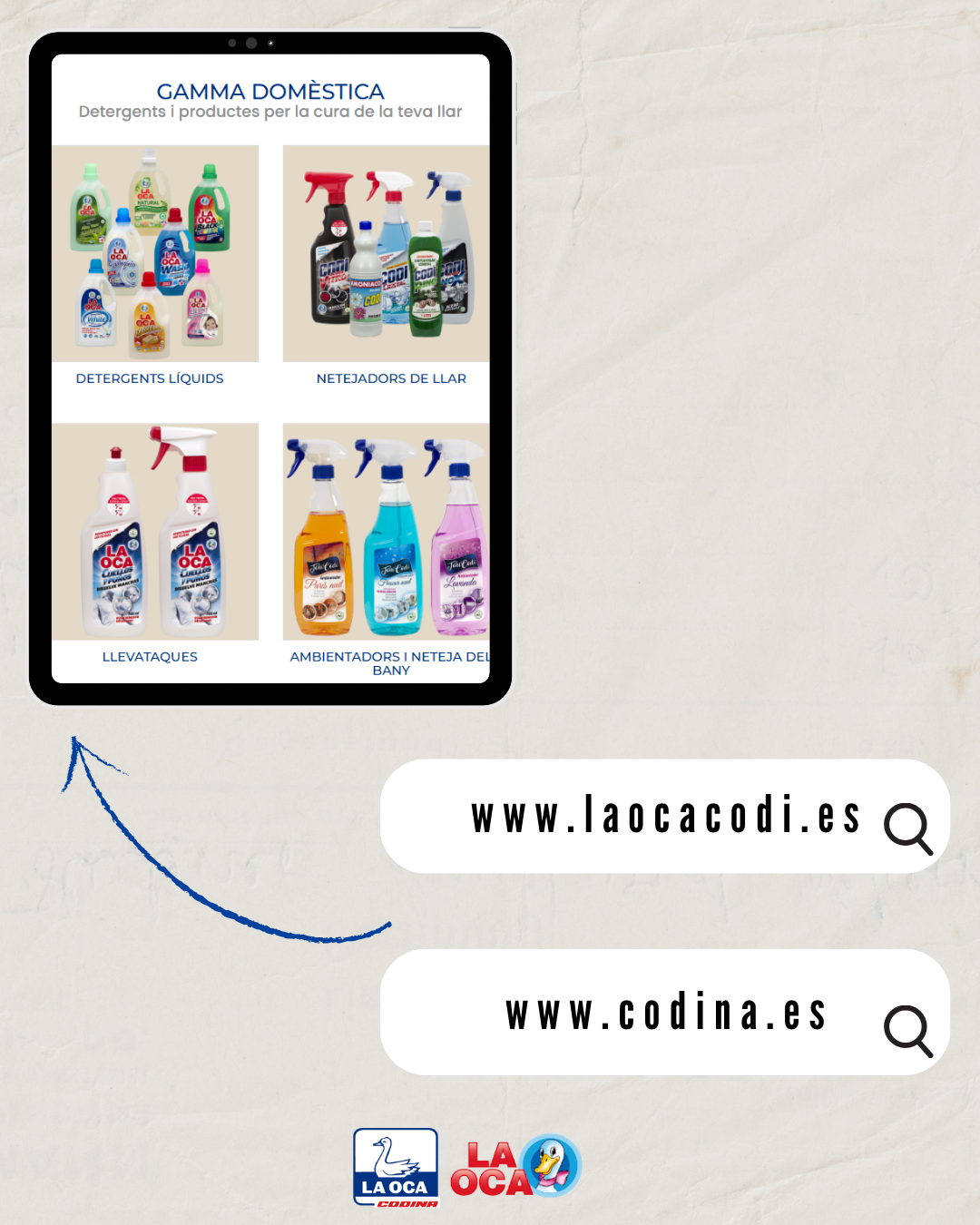 Producimos para uso doméstico con las marcas LA OCA y CODI y para uso profesional con la marca CODINA.